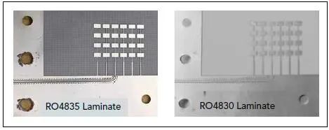 10GHz에서 라미네이트의 유전 상수는 3.48이고 손실 탄젠트는 0.0037입니다(IPC TM-650 2.5.5.5 표준 테스트 기준). 또한, ro4830 라미네이트의 유전율은 3.24이고, 손실 탄젠트는 0.0033입니다(ipctm-650 2.5.5.5 Standard Test 기준). Ro4835 라미네이트는 1080 표준 직조된 불균형 유리 천으로 만들어지며 세라믹 필러로 강화됩니다. 대조적으로, ro4830 라미네이트는 1035 평면 개방형 유리 섬유 편조 및 더 작은 입자로 채워진 세라믹으로 강화되었습니다. 표 3은 ro4835 및 ro4830을 기반으로 하는 라미네이트의 특성을 추가로 비교합니다.